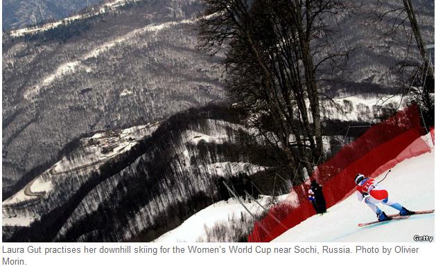 Downhill 是最快速的高山滑雪形式。参赛者从雪山高处以最快的速度滑下,时速能达到每小时85英里。山顶到山底的高度落差分别是男子赛800-1100米,女子赛500-800米。