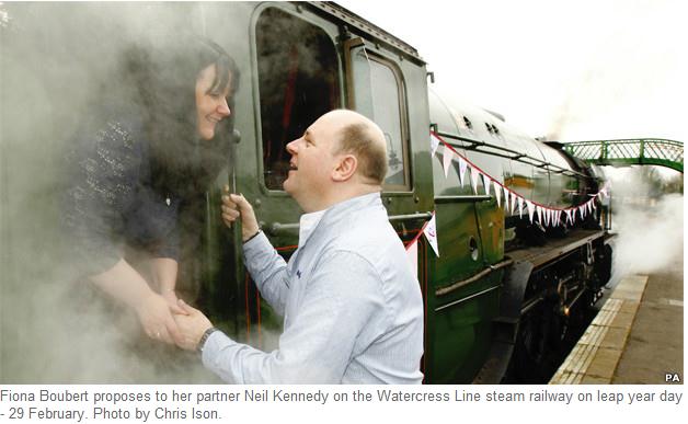 爱尔兰和苏格兰有一个传统:在润年二月二十九这天女子可以向男子求婚,不过万一男子谢绝女方,那么这名男子要给女的买一块衣料(苏格兰)或一件晚礼裙(爱尔兰)。