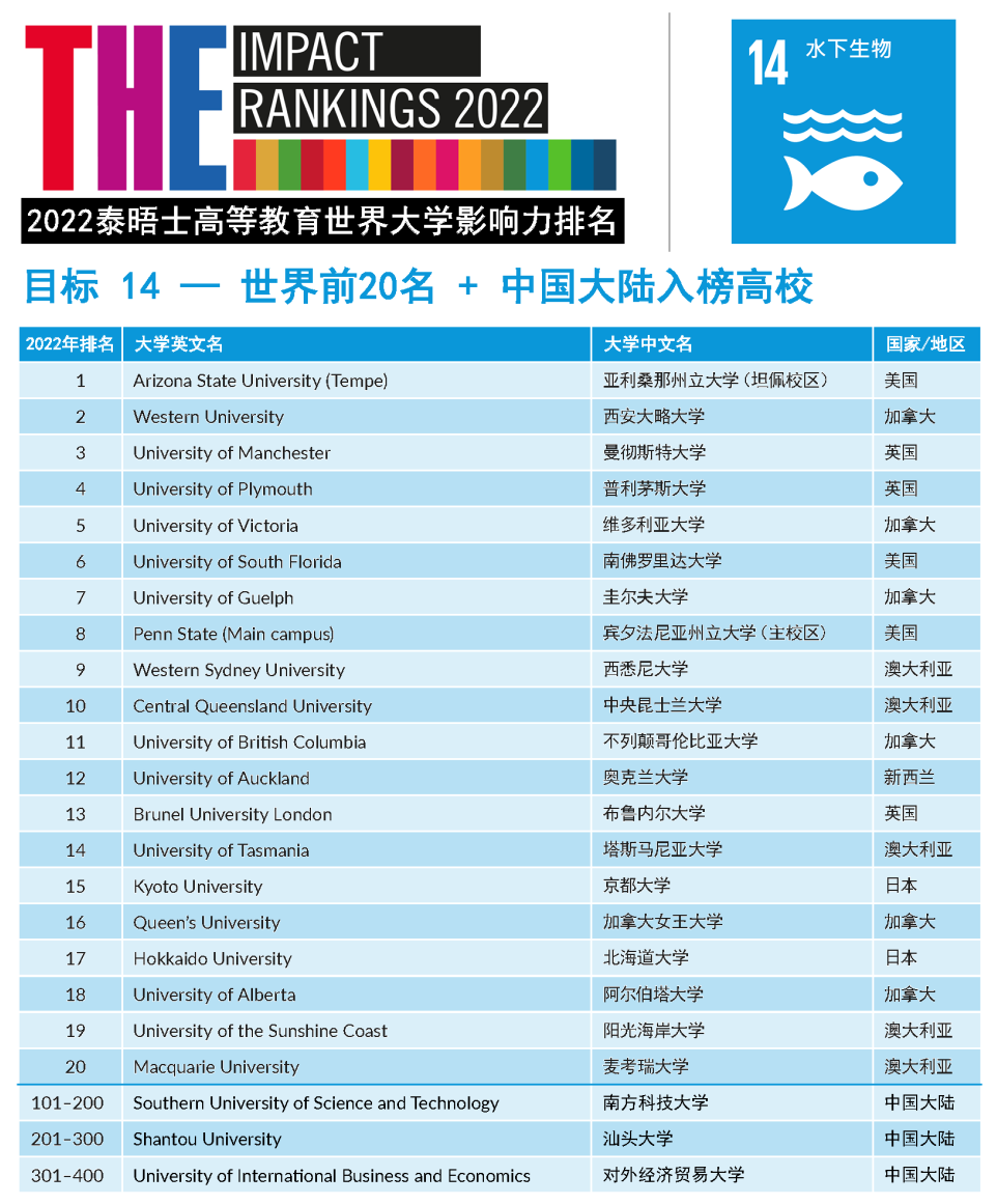 这项排名聚焦大学对水下生物的研究、及其对水生生态系统的教育和支持。