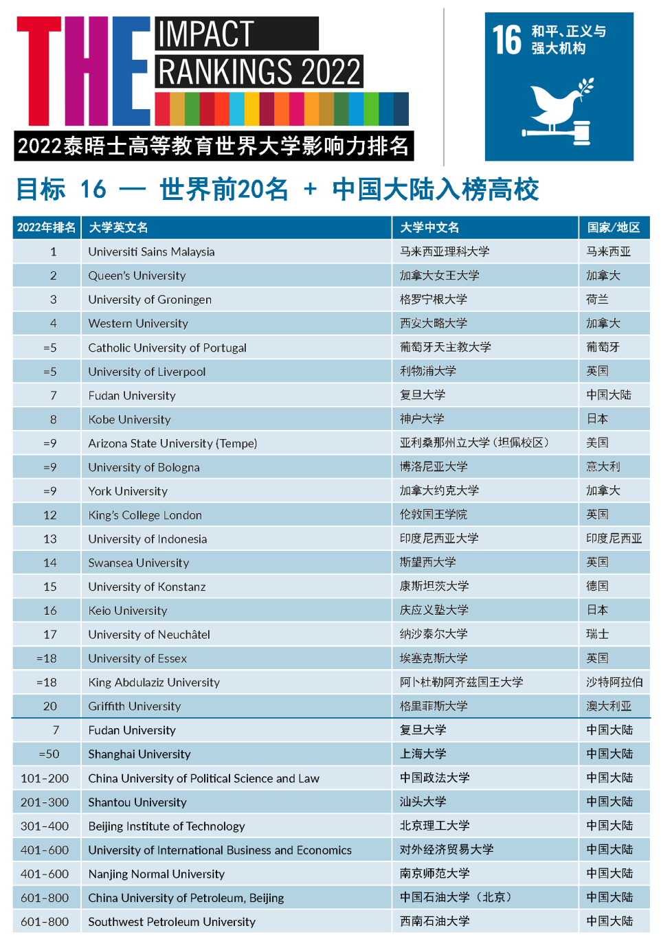 这项排名聚焦大学对和平与正义的研究,并担任其国家政府顾问,参与学术自由政策。