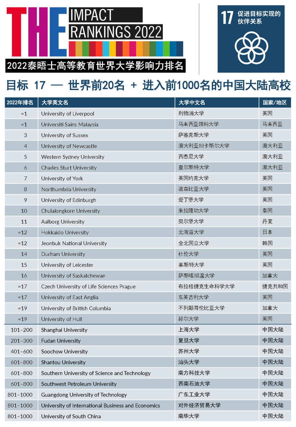 本文关键字: THE世界大学影响力 世界大学排名