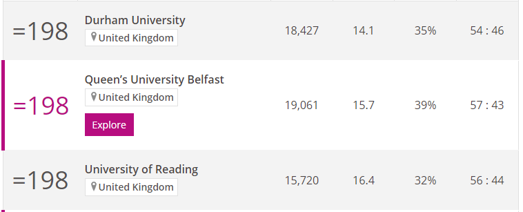 另外,伯明翰大学(108)、兰卡斯特大学(122)、伦敦玛丽女王大学(124)、利兹大学(128)、纽卡斯尔大学(139)、约克大学(139)、莱斯特大学(163)、利物浦大学(176)、卡迪夫大学(187)。