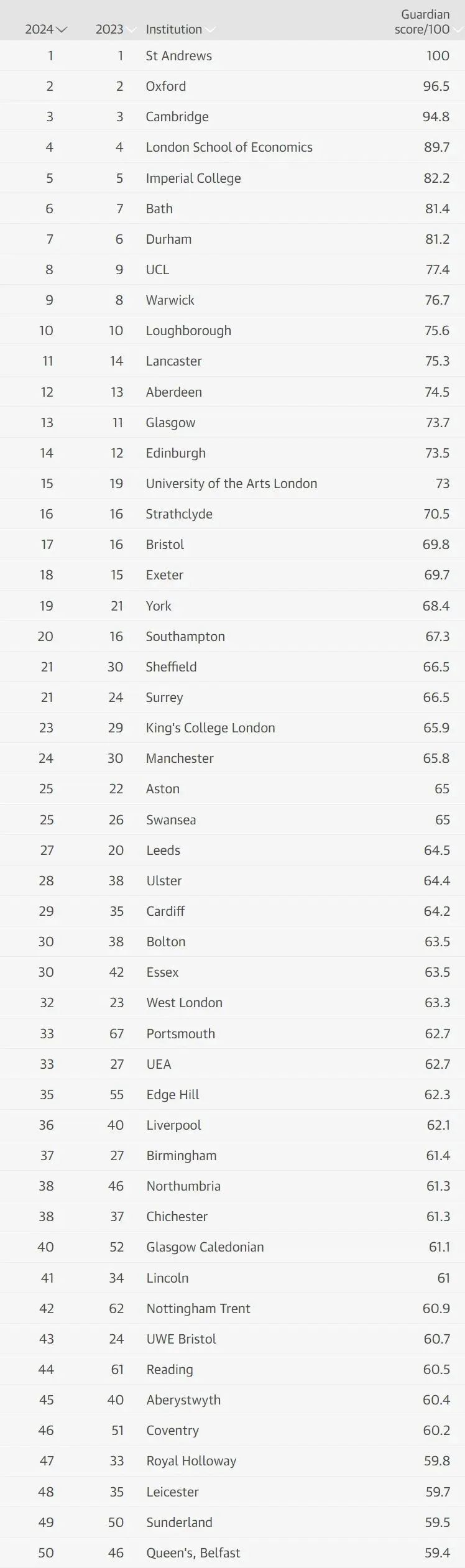 英国《卫报(The Guardian)》重磅发布了2024年英国大学排名,来本文和新东方在线雅思一起来看看2024年卫报英国大学排名top50排名详情吧。