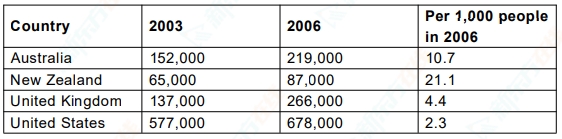The table below shows the number of temporary migrant workers in four countriesin 2003 and 2006 and the number of these workers per 1,000 peopleinthesecountries in 2006.