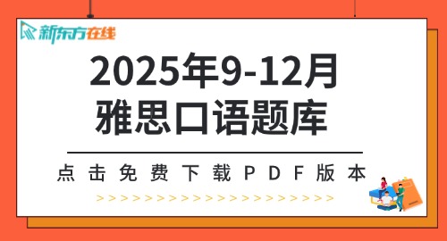 2025年雅思口语又到了9月雅思口语换题季啦,想知道雅思口语都考了哪些题吗?新东方在线雅思给大家整理了2025年9-12月雅思口语新题题库完整版电子版内容下载,希望能给大家的雅思口语备考提供帮助。