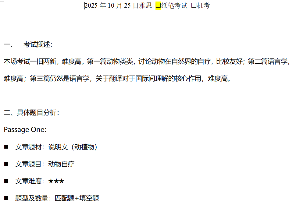 点击查看》》》》》2025年10月25日雅思考试题答案汇总。