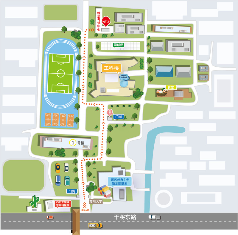 雅思纸笔、机考、口语考试地点:苏州市姑苏区干将东路178号。