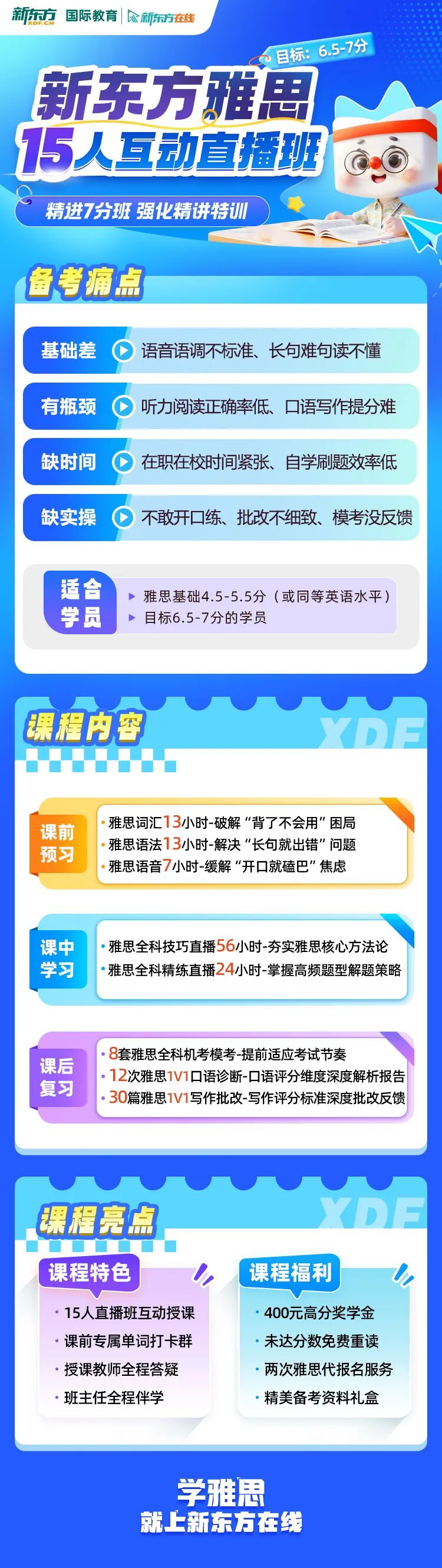 目标7+分:从雅思6.5分到7分,看似只有0.5分的差距,但大部分同学往往都是卡在这0.5分,可能刷了2、3次雅思考试还只停留在6.5分。