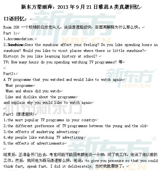 来源 : 27 09月23日 18:01 关键字 : 2013年9月21日雅思考试机经