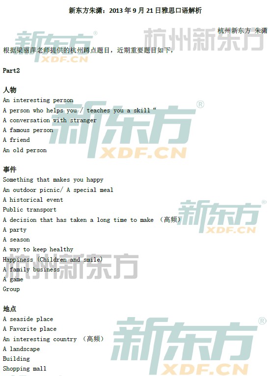来源 : 杭州新东方 09月23日 15:23 关键字 : 雅思口语机经