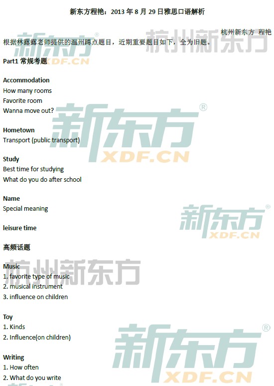 来源 : 新东方网 08月30日 16:39 关键字 : 2013年8月29日雅思口语解析