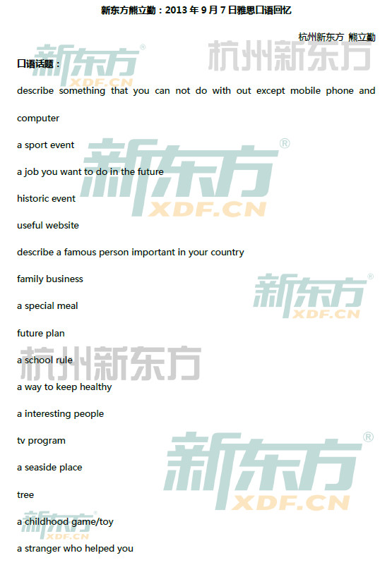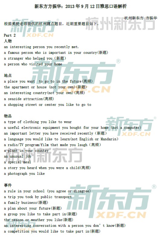 2013年9月12日雅思口语机经(新东方版) 敬请期待……