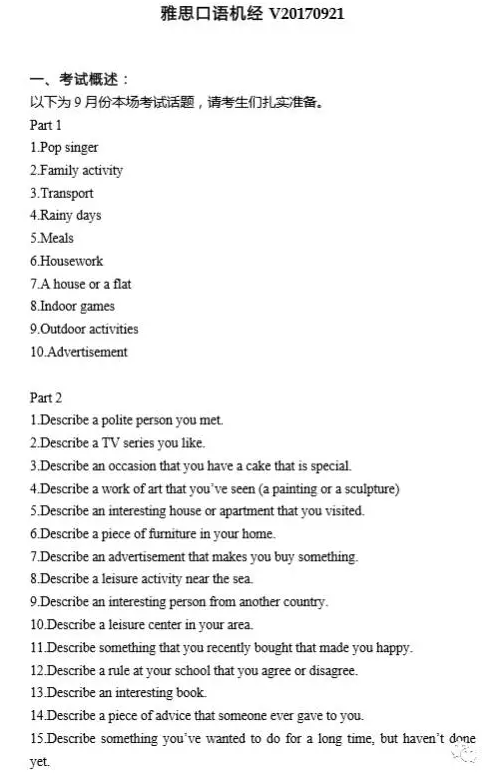 为了方便大家的学习,新东方在线雅思网第一时间为大家准备了有关2017年9月21日雅思口语考试回忆及解析的内容,供大家参考!新东方在线雅思网将第一时间为大家发布最新、最全、最专业的雅...