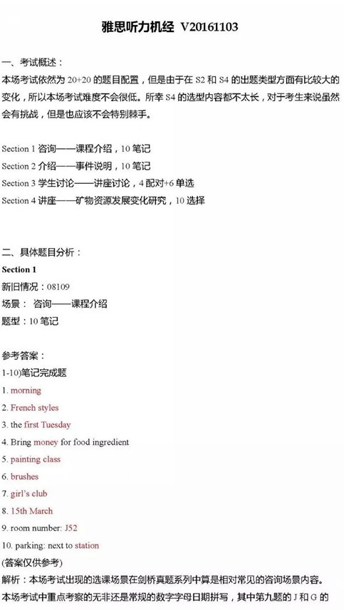 为了方便大家的学习,新东方在线雅思网第一时间为大家准备了有关2016年11月3日雅思听力真题(网友回忆版)的内容,供大家听力参考!新东方在线雅思网将第一时间为大家发布最新、最全、最专...