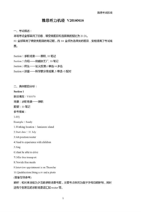 雅思听力机经