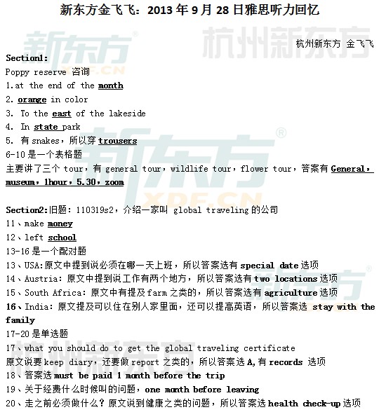 以下就是新东方在线雅思频道第一时间为大家整理收集的新东方金飞飞老师的2013年9月28日雅思听力考题回忆,希望对各位考生雅思备考有所帮助! 以上就是新东方在线雅思频道为大家整理的...
