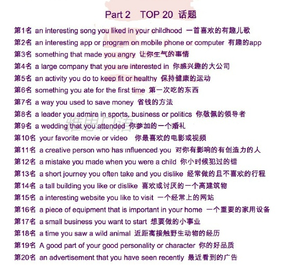 上一次的雅思考试已经结束,下一次的雅思考试还会远吗?为了帮助大家在雅思写作考试中取得好成绩,下面就是新东方在线雅思网为大家收集整理的2016年12月3日雅思口语小范围真题预测。供大...